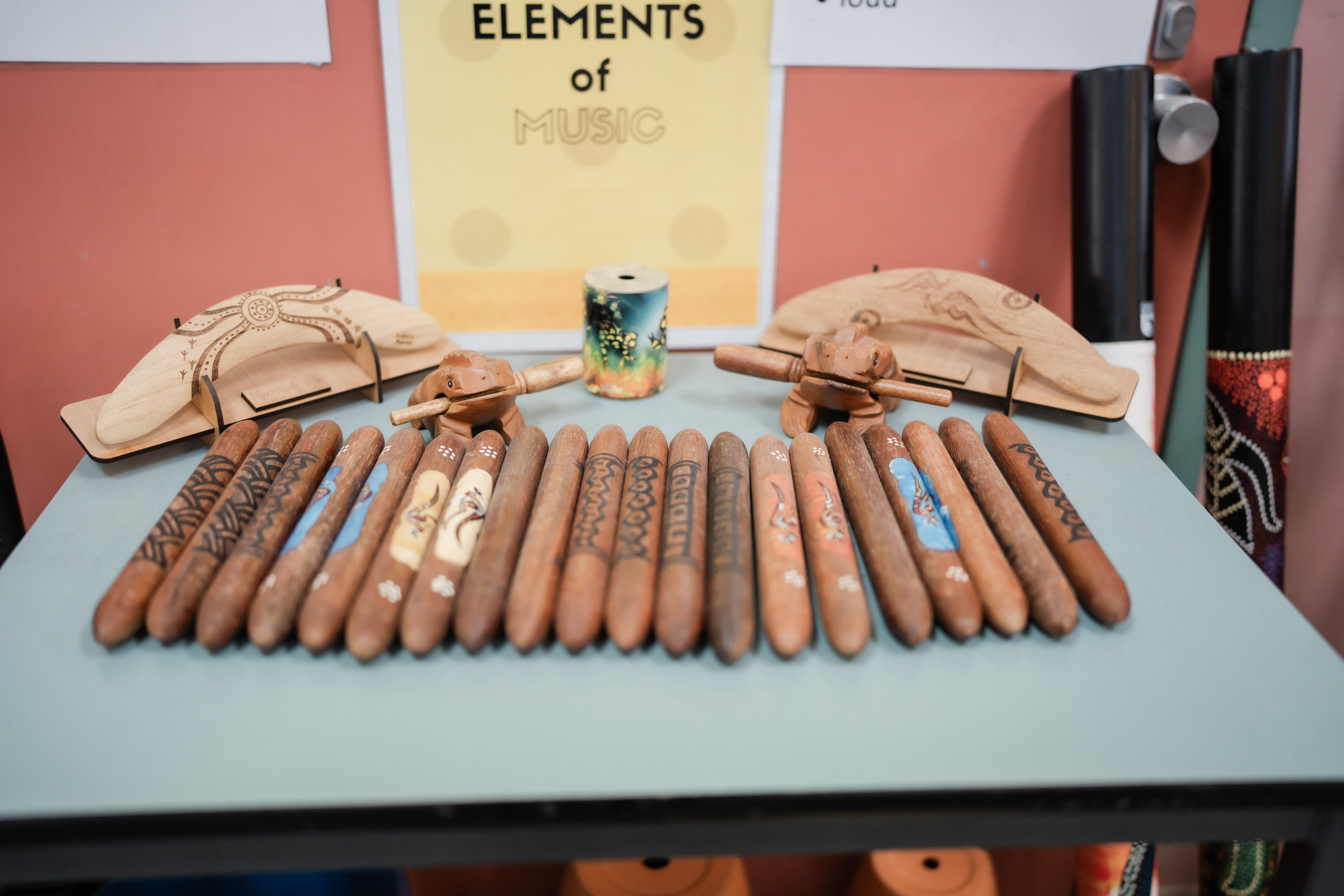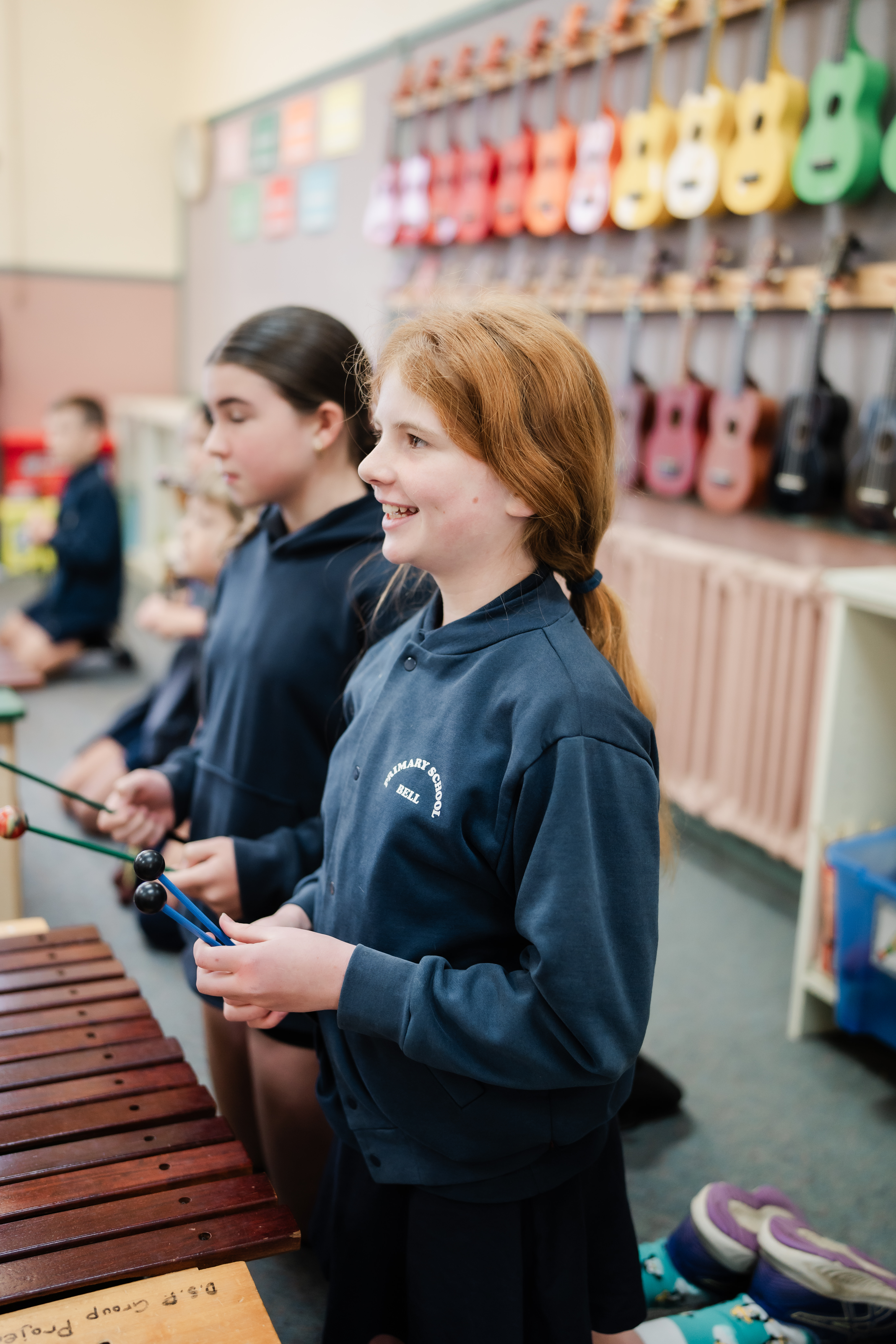 We have an extensive range of instruments at the school including xylophones, ukuleles, keyboards, guitars, drums and various percussion instruments. Students are also exposed to music technology using programs such as Garageband and websites such as Chrome Music Lab.